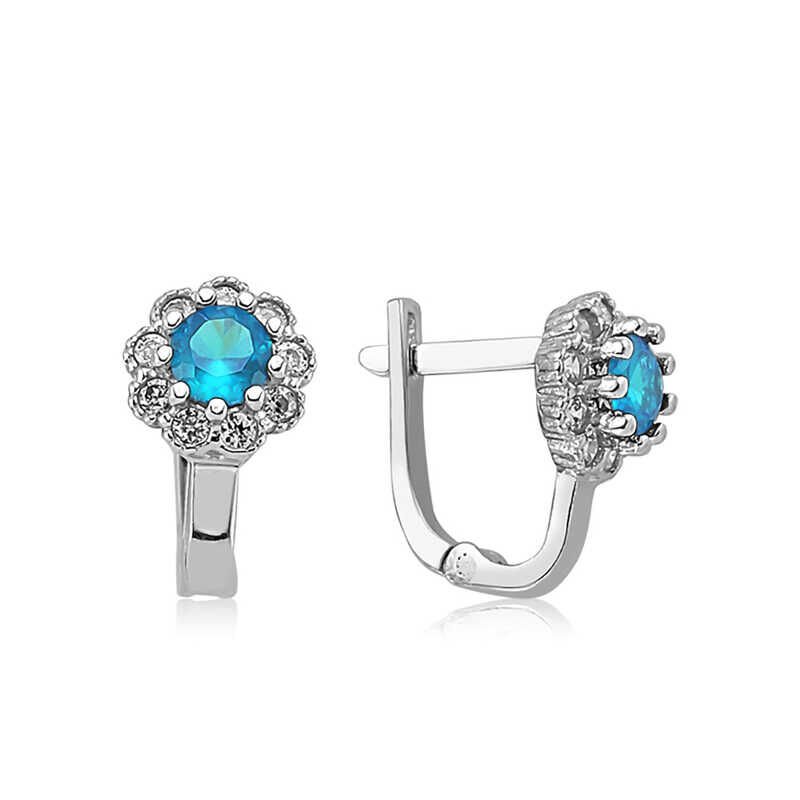 Gümüş Turkuaz Çiçek Desenli Yuvarlak J Kadın Küpe