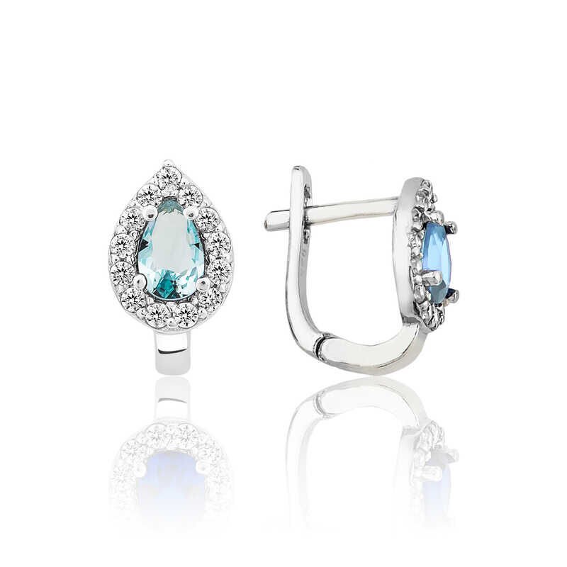 Gümüş Turkuaz Taşlı Damla J Kadın Küpe