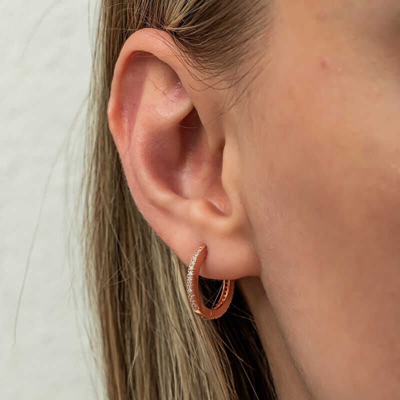 Gümüş Zirkon Taşlı Rose Oval Küpe