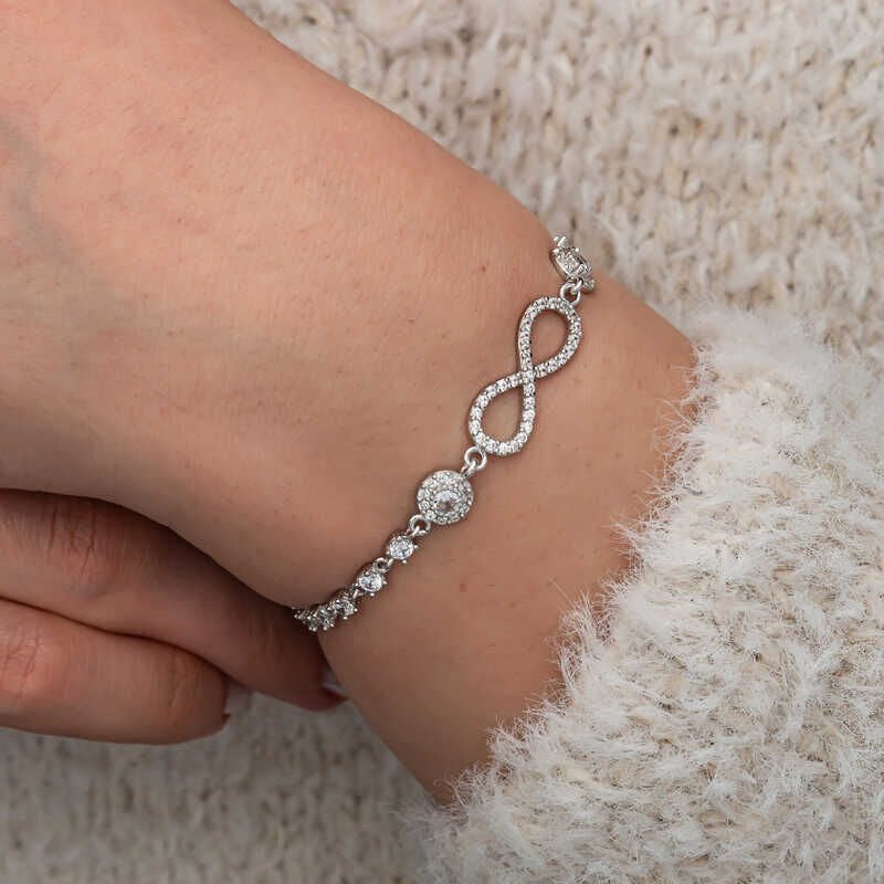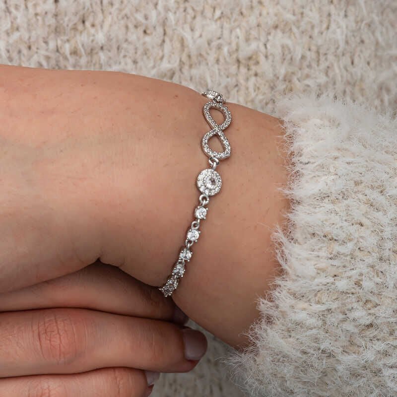 Gümüş Zirkon Taşlı Sonsuzluk Kadın Bileklik